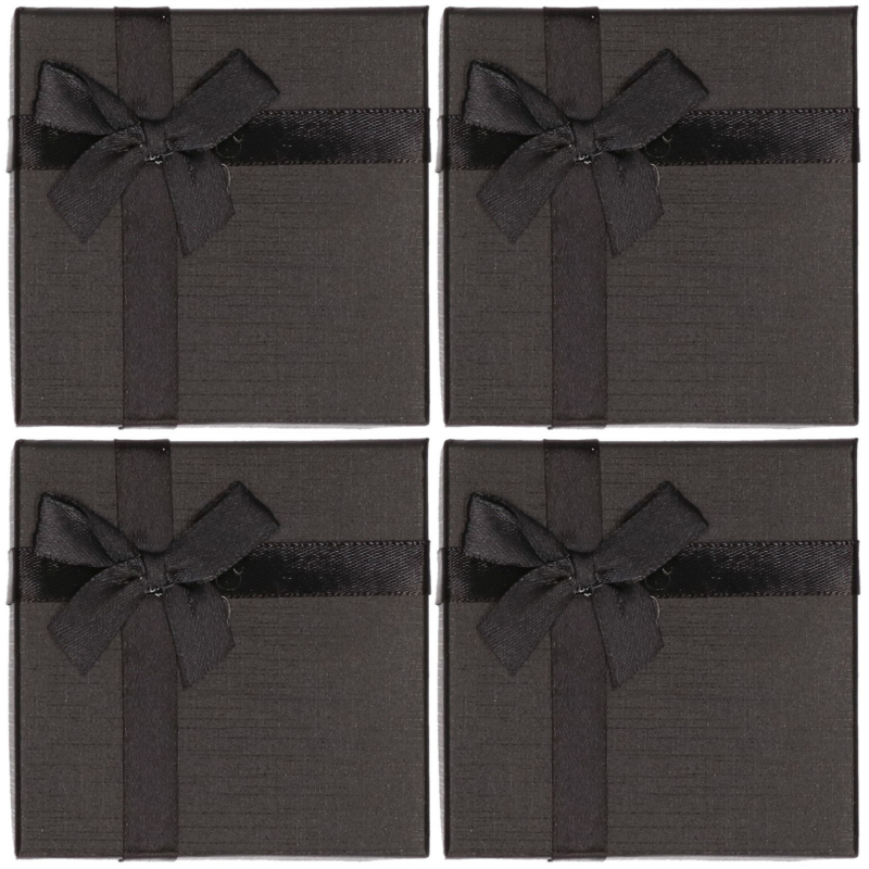 Sieradendoosje met strik – 4x stuks – zwart – 9 x 9 cm – cadeaudoosjes – verpakking