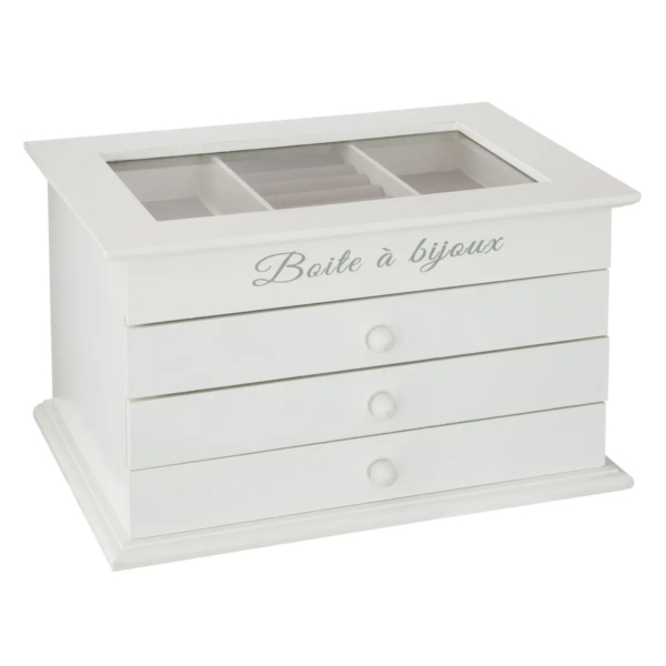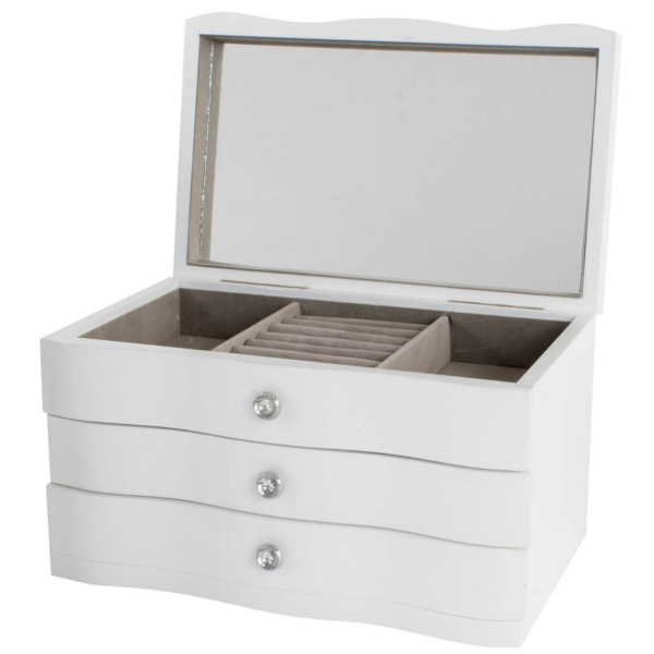 Sieradenkistje Mumbai – 25 x 17 x 15 cm – Ivoor wit – Juwelenkistje – met spiegel en 3 lades