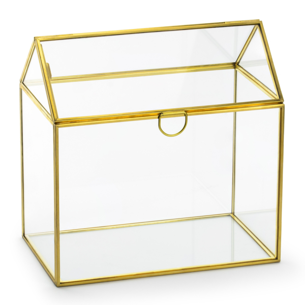 Sieradendoos opbergkistje – goud huisje – glas/metaal – 13 x 21 cm