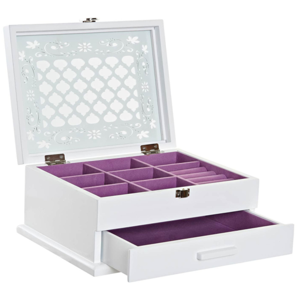 Sieradenkist/juwelenkist met lade wit van hout 25 x 19 x 11 cm